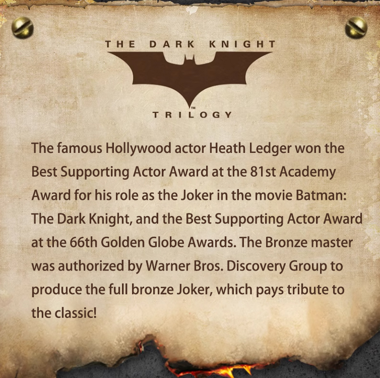 This Joker sculpture is a masterpiece! The ancient lost-wax casting technique gives it such fine details, especially in the facial expression — truly captures Heath Ledger’s iconic performance. A must-have for any movie or DC fan.