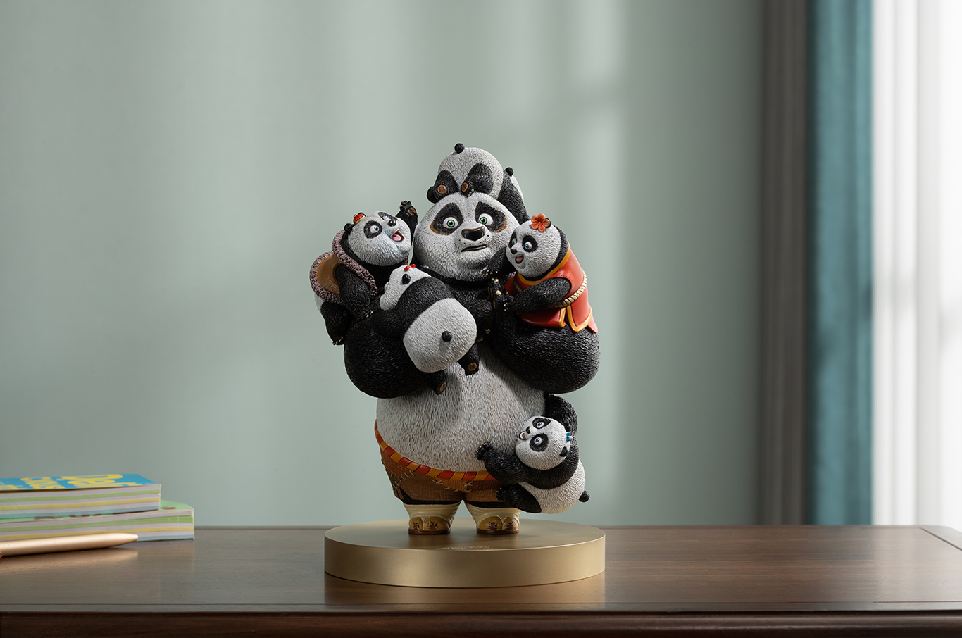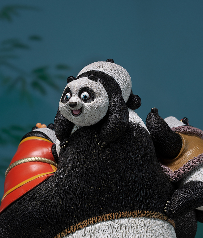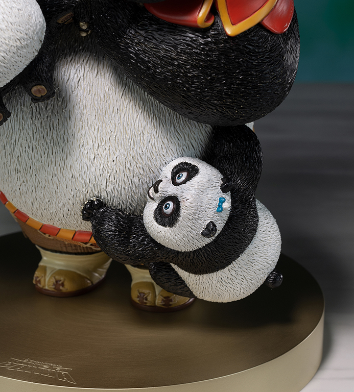 Una escultura que captura la esencia del arte marcial y el viaje emocional del personaje. Perfecta para fanáticos de Kung Fu Panda y coleccionistas de arte en metal.