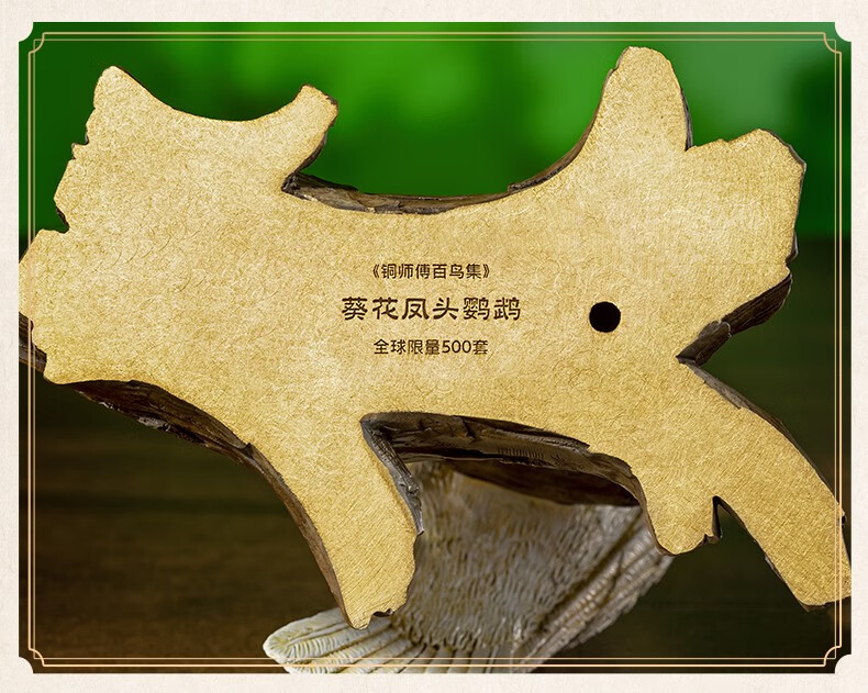 With the body irregularly colored, the whole of Sulphur-crested Cockatoo is white and its feather of crown is the yellow. When it is angry, the head of crown stands up in a fan shape, just like a blooming sunflower. This work is limited to 500 pieces. Each piece has an independent number, and the number is random. Number selection serviceis not supported.